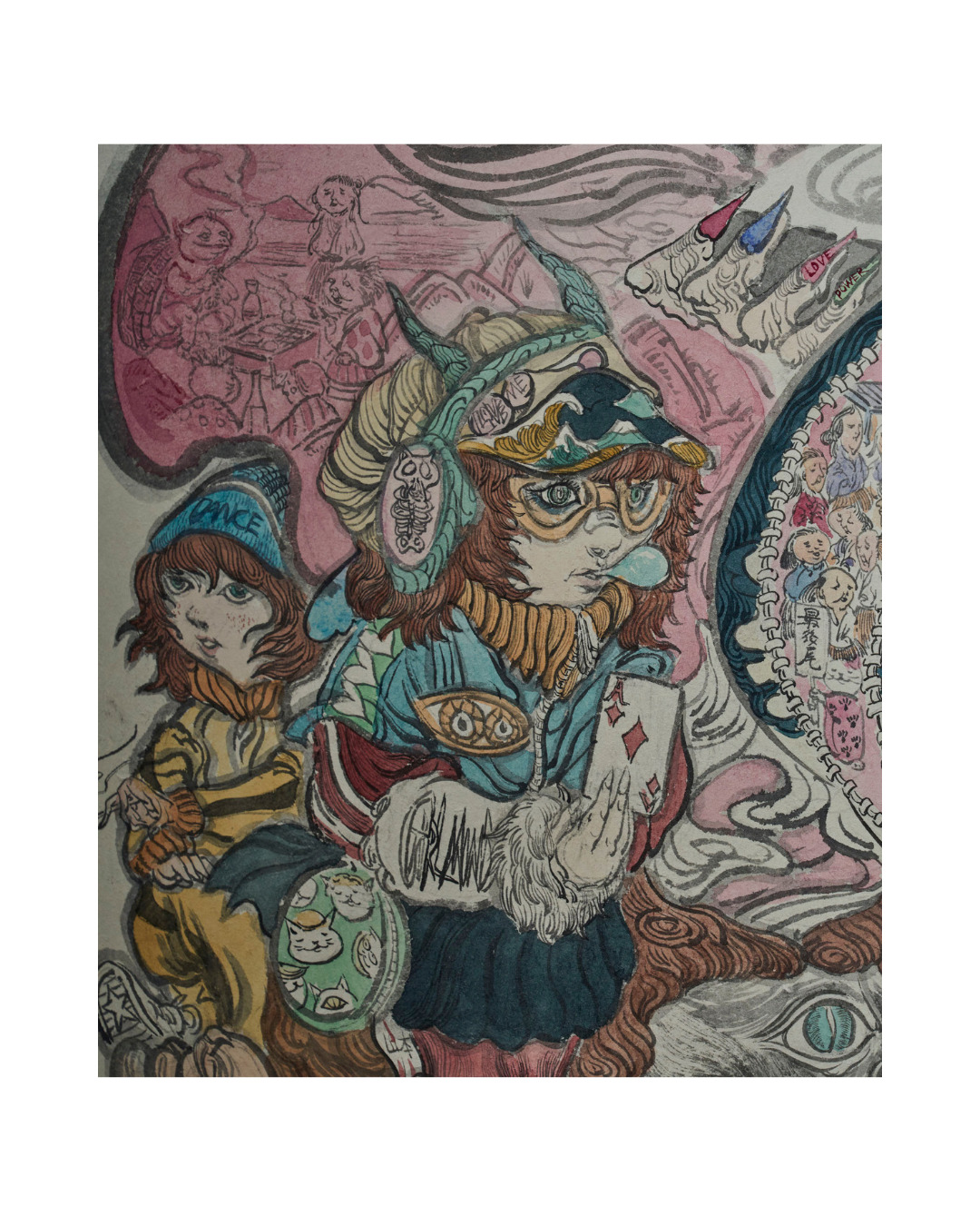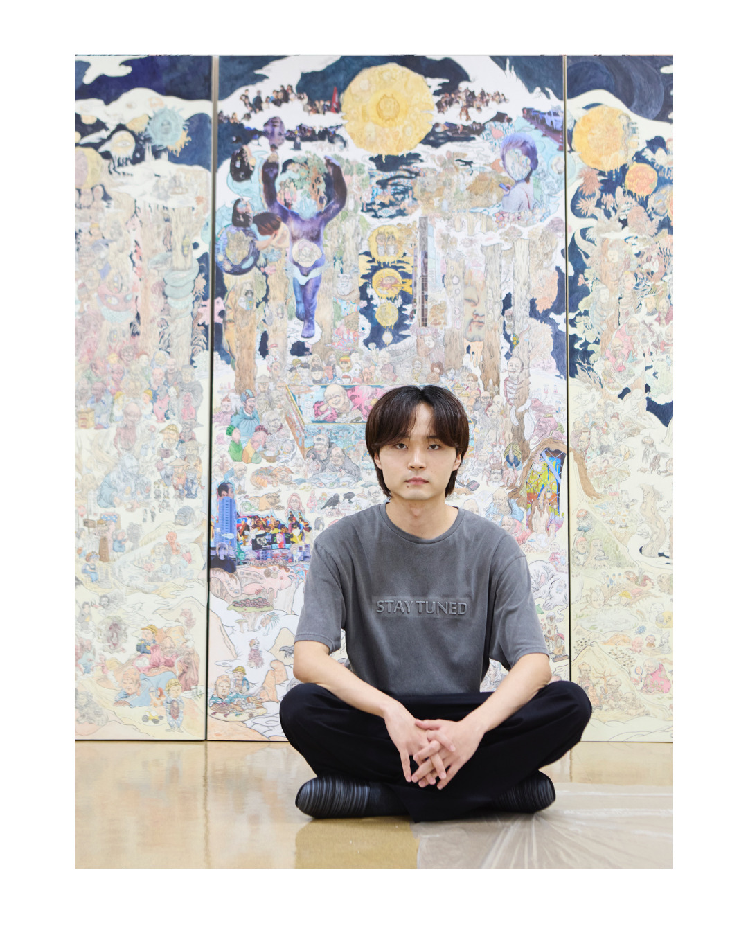 漫画的ユーモアと現代的な社会観を融合した独自の筆致で注目を集めています。