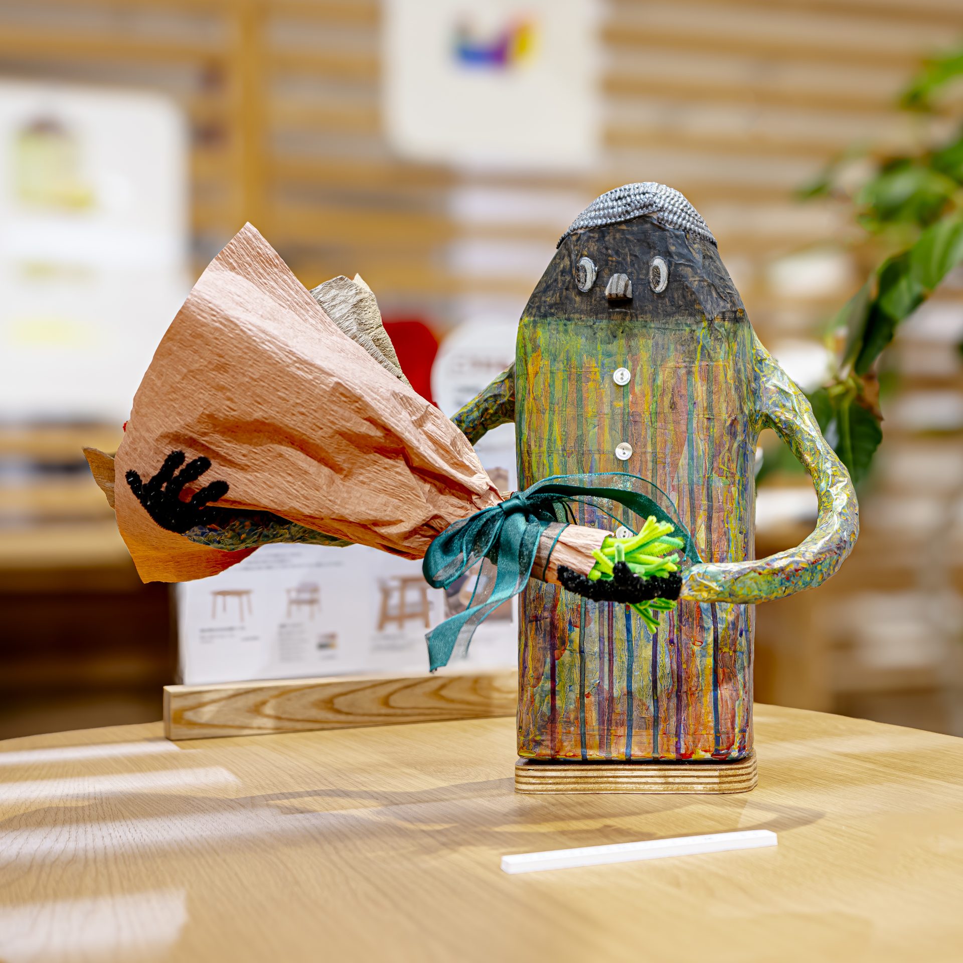 身の回りのものを気軽に用いる堀江の作品。その中でも用いられることが多いものの一つがプラスチックです。今回のワークショップでは、熱で変形させたストローを組み合わせて立体を造ります。