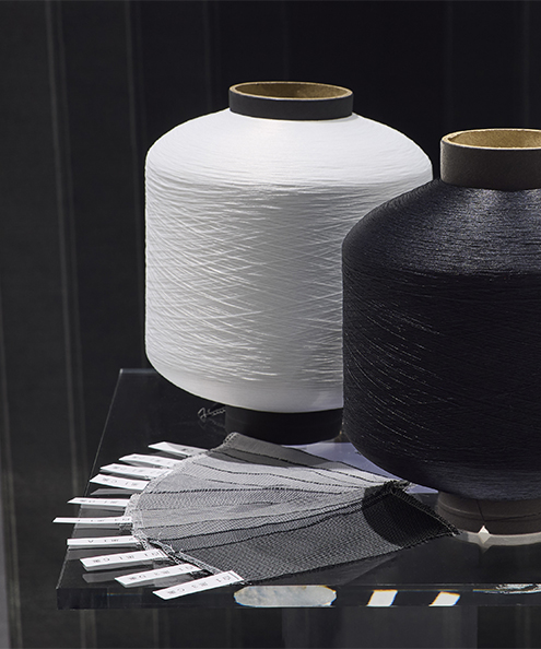 A-POC ABLE ISSEY MIYAKEは今回の協業で、このプロセスをさらに発展させ、一枚の布の本質へ立ち返ります。織物の最小単位であるタテ糸とヨコ糸の関係に着目し、白と黒、わずか二色の糸のみを用いて、織組織の密度によって従来の染色や色彩に頼らないグラデーション表現を実現しています。シンプルな要素から生まれる複雑な表現を追求し、光に応答する銀塩粒子と、織物を構成する糸を概念的に重ね合わせたこの試みは、「ビットレベルの布」とも言える特別なテキスタイルです。