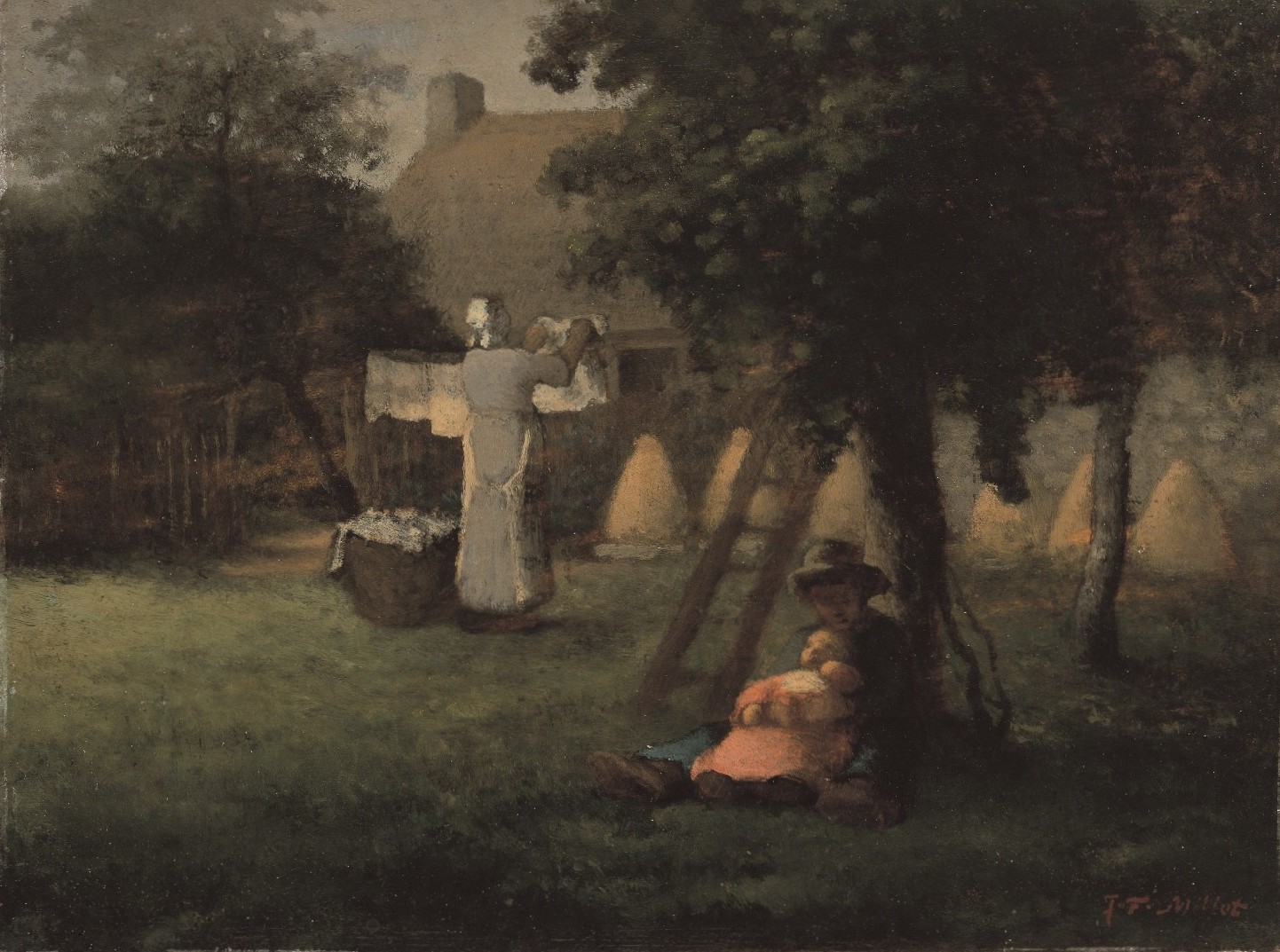 ジャン=フランソワ・ミレー《洗濯物を干す女》1854‐1856年/ユニマットグループ蔵