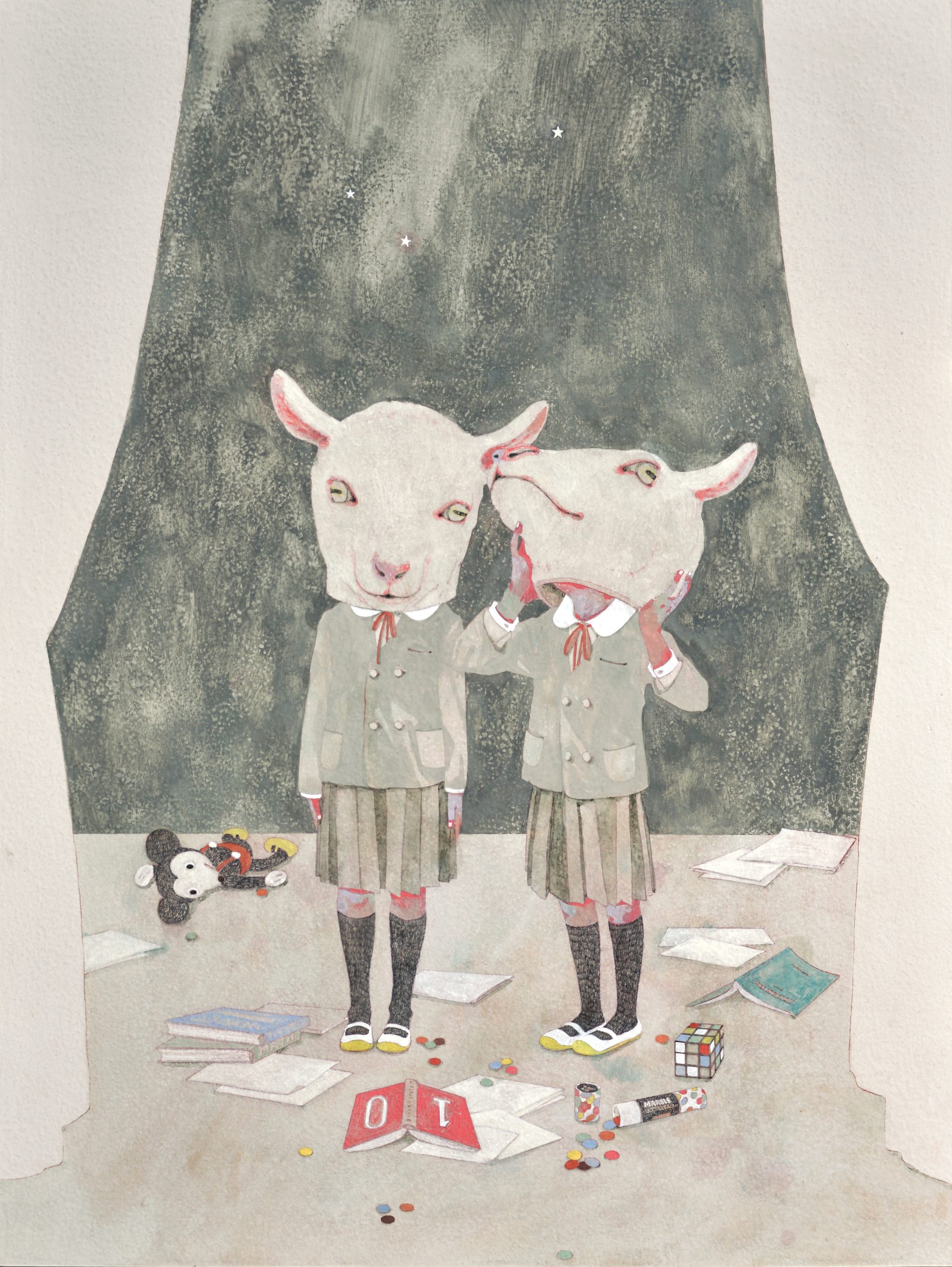 本展のタイトル「まよえるわたしたち」に登場するのは、羊の被り物をした子どもたちです。