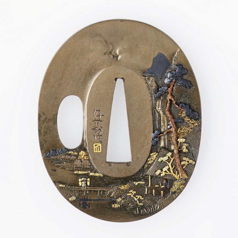 山水図鐔 銘 染谷知信 江戸時代 大阪歴史博物館蔵(勝矢コレクション)