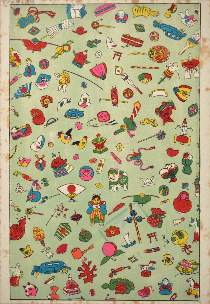 木版千代紙 おもちゃ尽くし 大正時代~昭和時代 大阪歴史博物館蔵(木村コレクション)