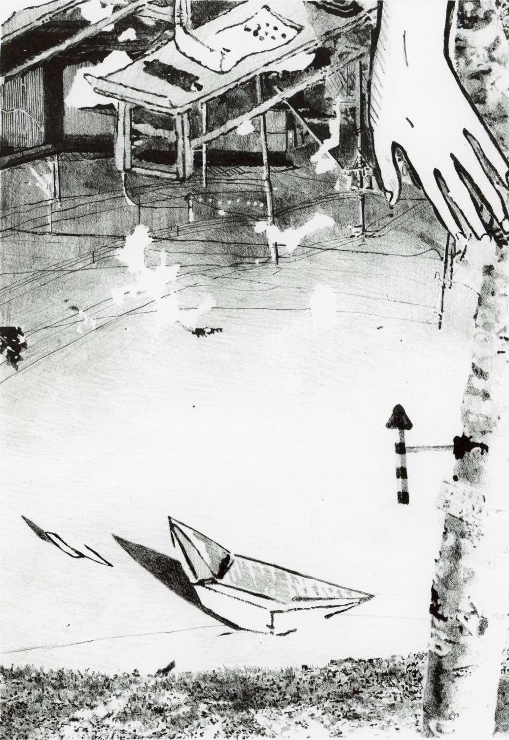 自らが引き寄せられた風景をもとに、リトグラフによる版表現を行う。リトグラフの版では一度描画をすると修正が難しく、引かれた線はその場で存在が決定される。このような不可逆な性質は、風景と対峙した瞬間に感受した何かに、どこか近しいものを覚える。