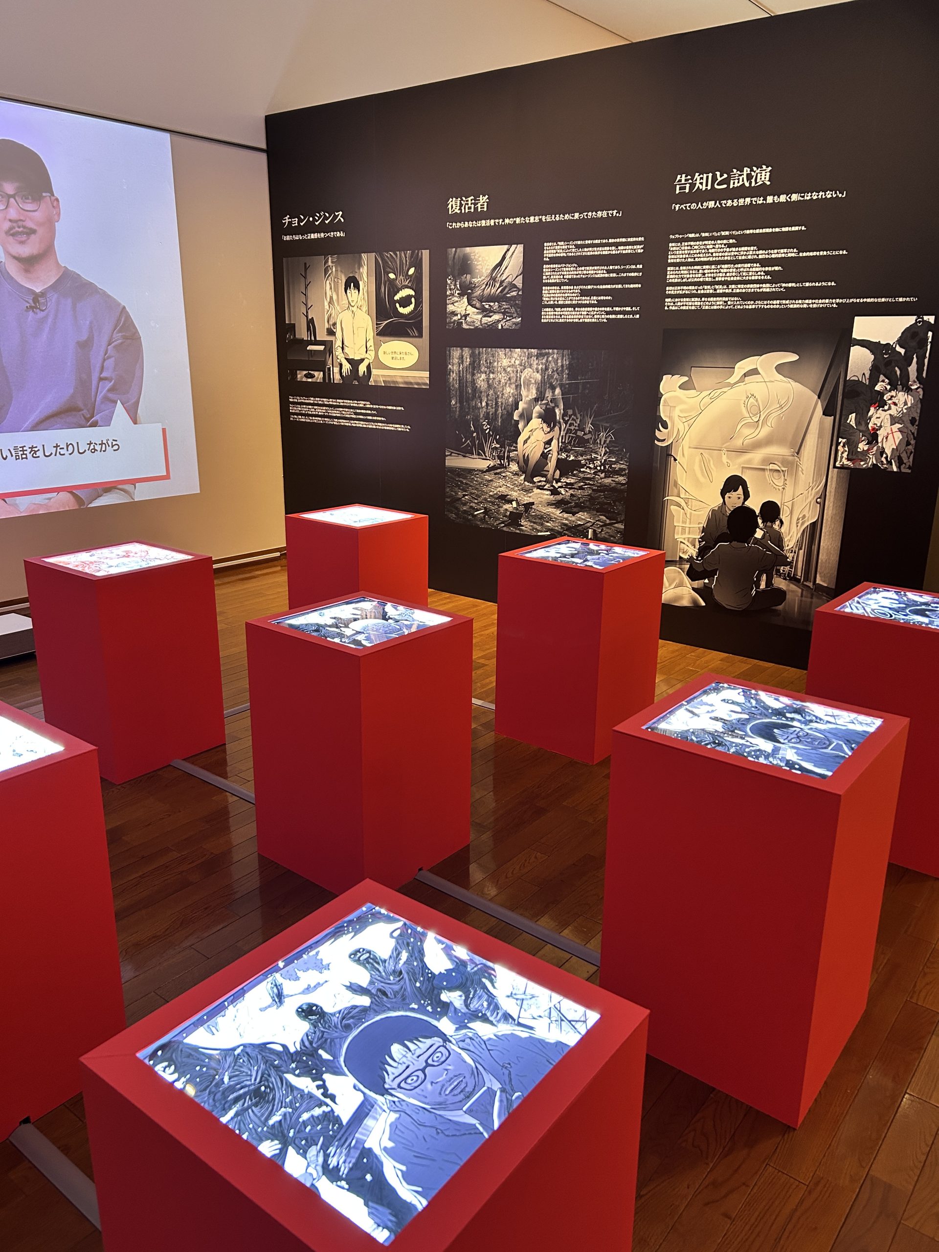 本展では韓国を代表する3作品『ユミの細胞たち』、『地獄』、『デビューできないと死ぬ病にかかってしまいました』を中心に、日本でも人気の高いジャンルである「ロマンスファンタジー・ウェブトゥーン」の4作品を併せてご紹介します。