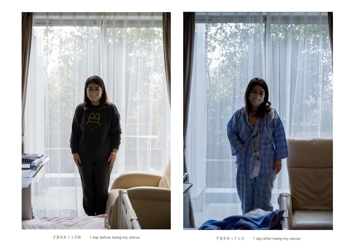 手術前後に撮影されたセルフポートレイトでは、本来写真に写ることのない臓器の不在が、連続する時間のわずかな差異として示されます。それは、可視化できないものをいかにして表現しうるのかという、写真というメディアの本質に関わる問いを静かに投げかけます。