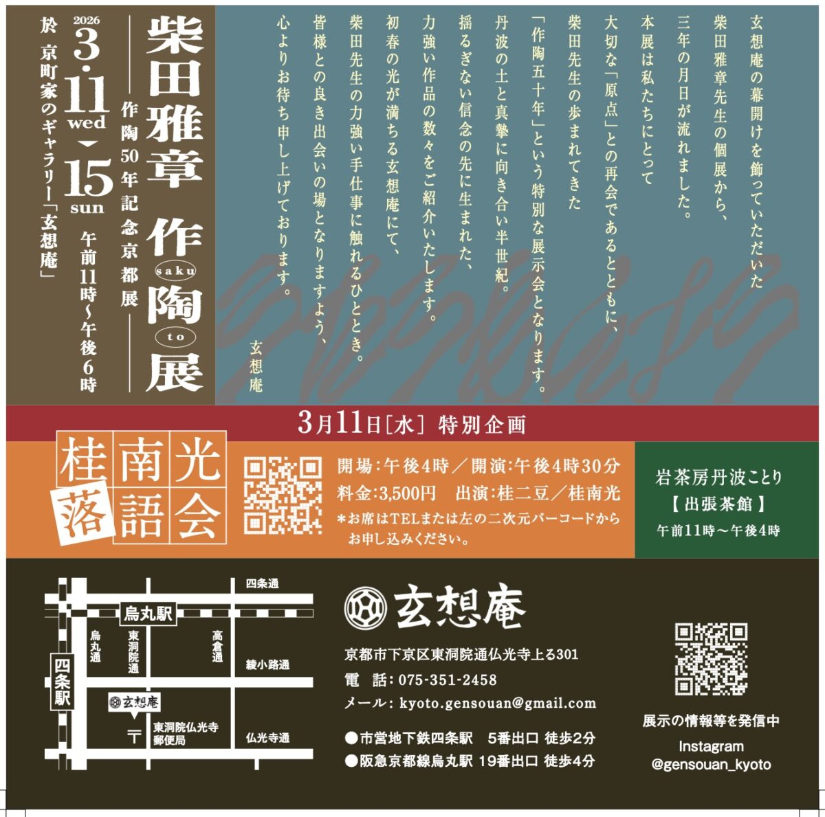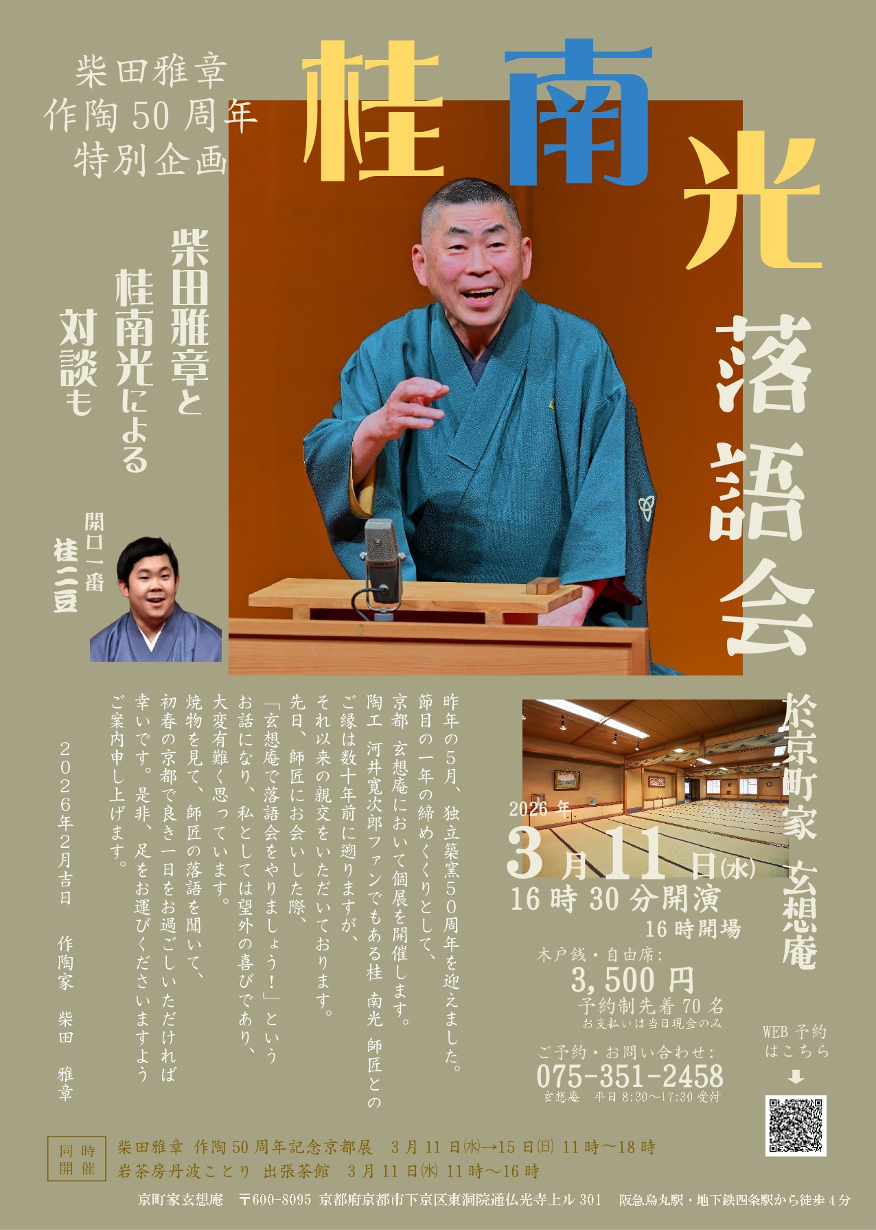 ◎桂南光落語会&柴田雅章×桂南光 対談 ~ 柴田雅章作陶50周年記念 特別企画 ~