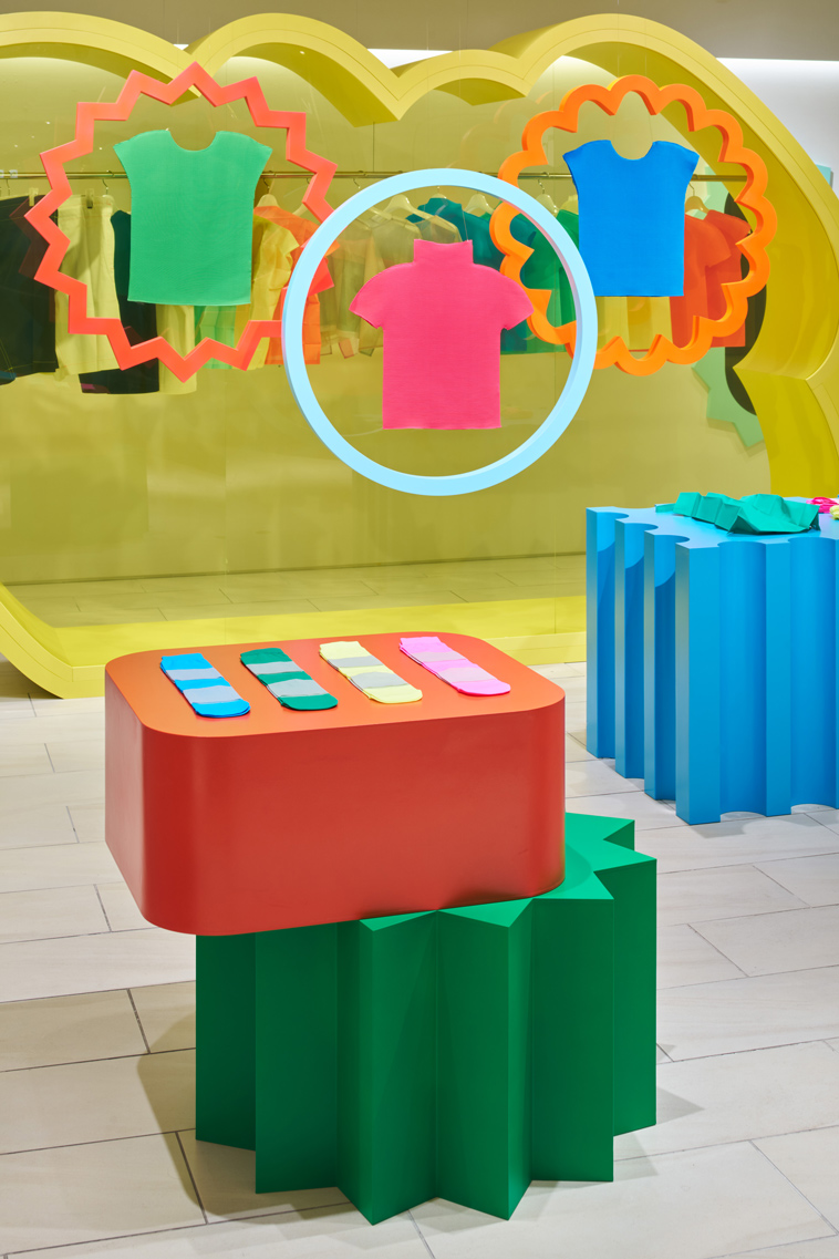ISSEY MIYAKE SHINJUKU | SHIKAKUでは、「NEON POP」の世界観を体感いただけるインスタレーションも展示します。ネオンカラーがあふれる、明るく活気に満ちた空間をお楽しみください。