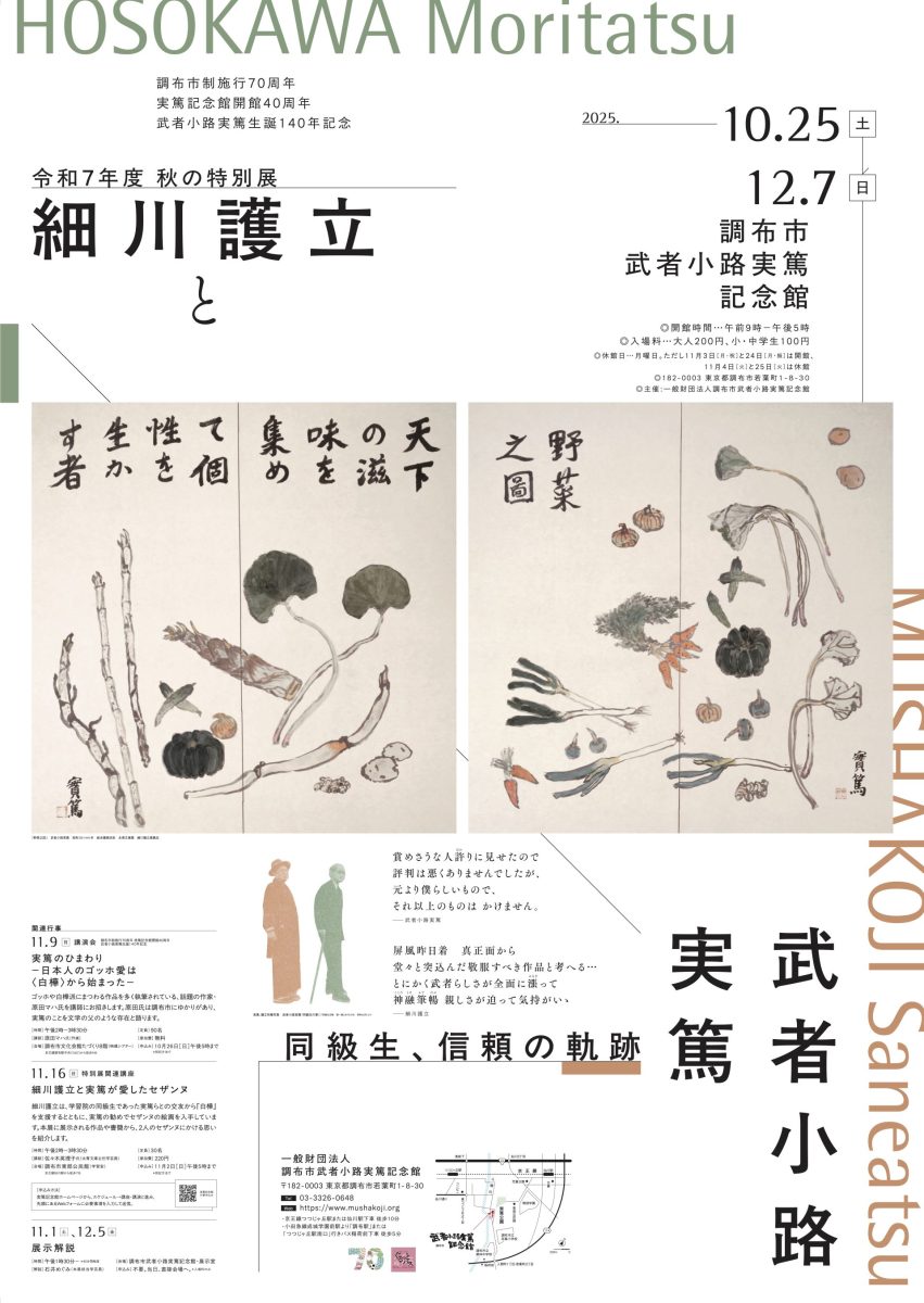 調布市制施行70周年 実篤記念館開館40周年 武者小路実篤生誕140年記念 秋の特別展「細川護立と武者小路実篤」