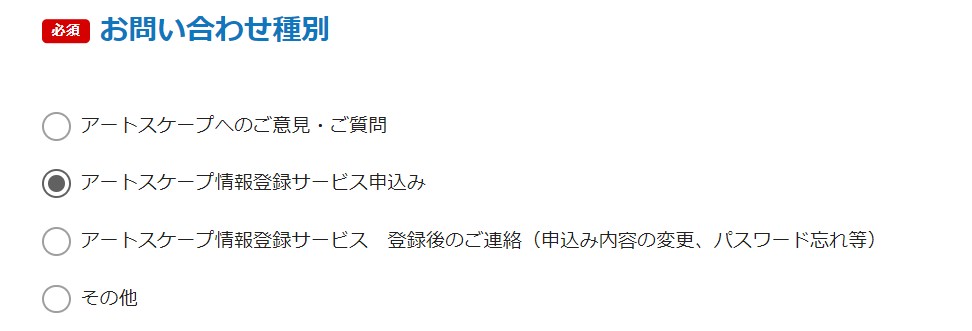 ② お問い合わせ項目の「アートスケープ情報登録サービス申込み」にチェック