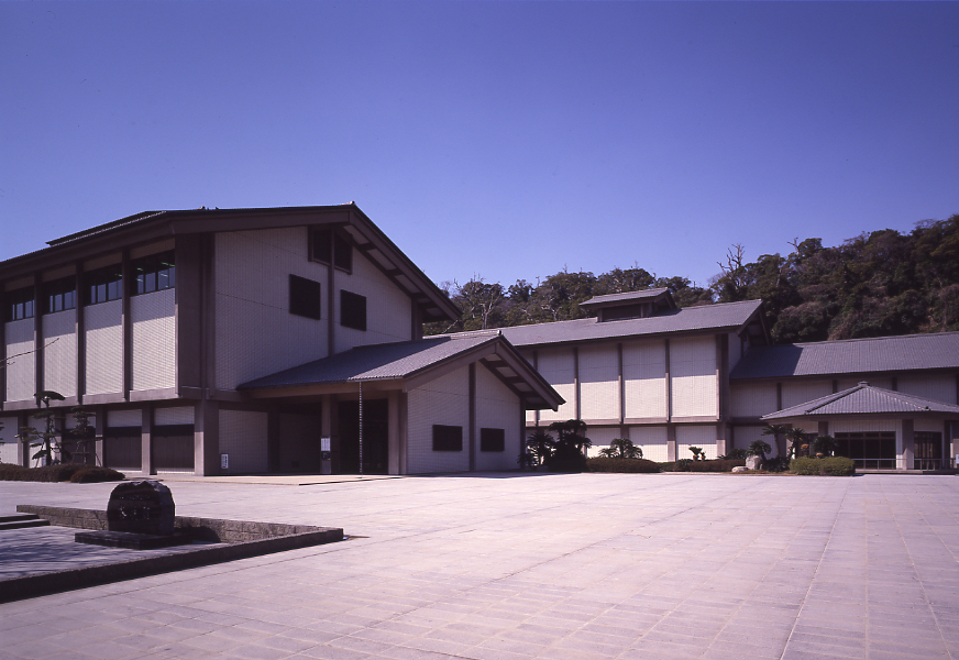 鹿児島県歴史・美術センター黎明館(通称 黎明館)は、明治百年を記念して昭和43(1968)年に建設準備が始まり、昭和58(1983)年10月に開館した人文系の総合博物館です。建物の設計は、文化勲章受章者谷口吉郎氏によるもので、建築の軸線および外観の意匠、色彩などは、隣接する鹿児島県立図書館と統一されています。
