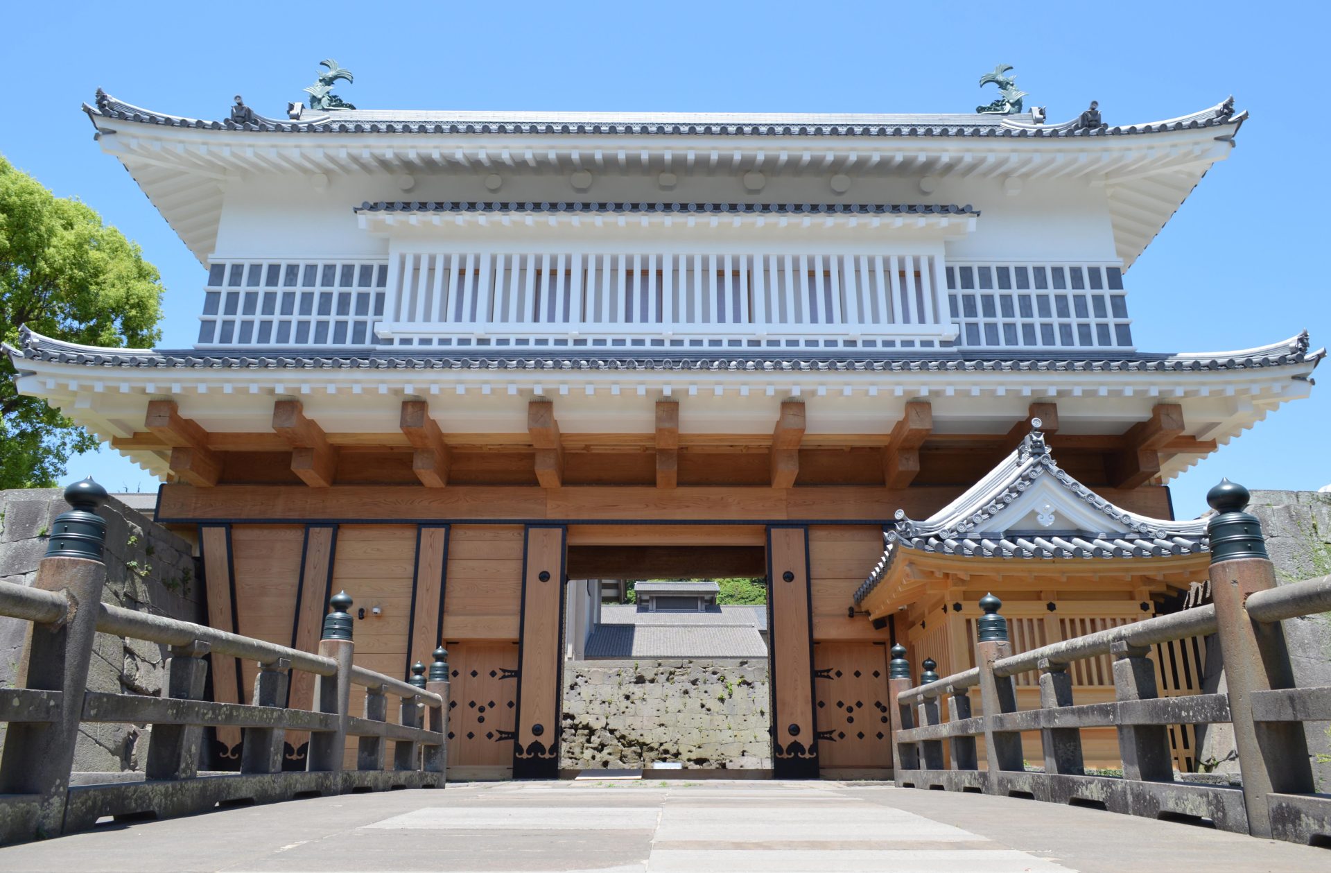 黎明館の敷地は、江戸時代の鹿児島城本丸跡にあたり、御角櫓跡を見学できるほか、堀、石垣、石橋などは当時の姿のまま、間近にご覧いただけます。また、令和2(2020)年3月に147年ぶりに御楼門が復元され、令和5(2023)年3月に黎明館の敷地を含む鹿児島城跡が国の史跡に指定されました。