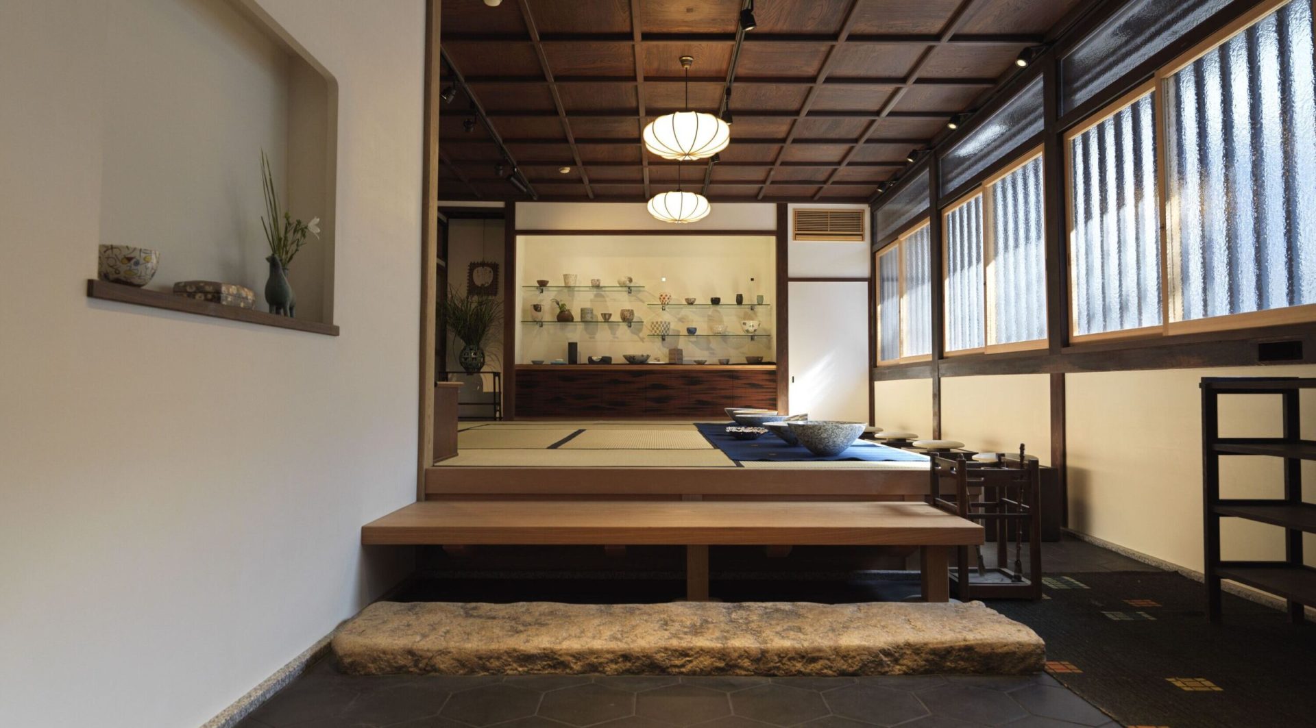 ※東洞院通仏光寺郵便局の隣、「廣田紬株式会社」の看板がかかった玄漆喰塗りの町家です。