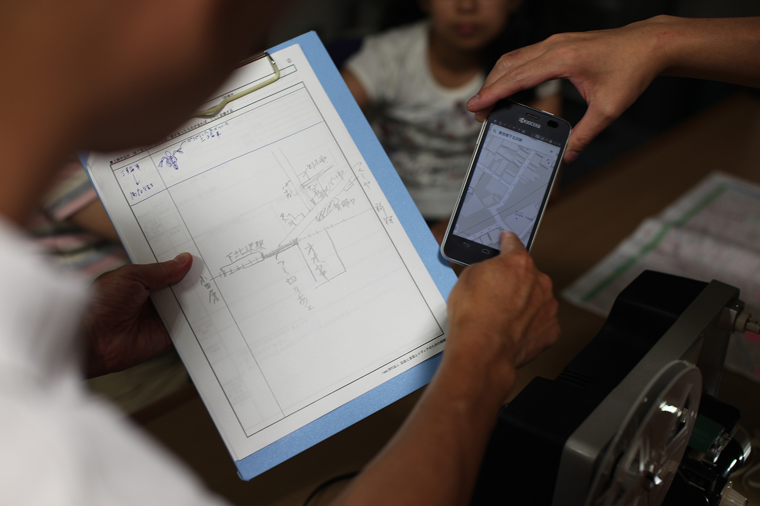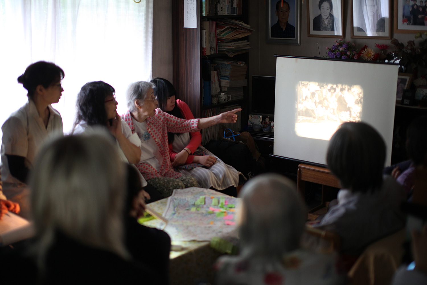 提供者を交えてのフィルム上映会の1コマ(提供者に先導されながら、記憶の地図を歩く)